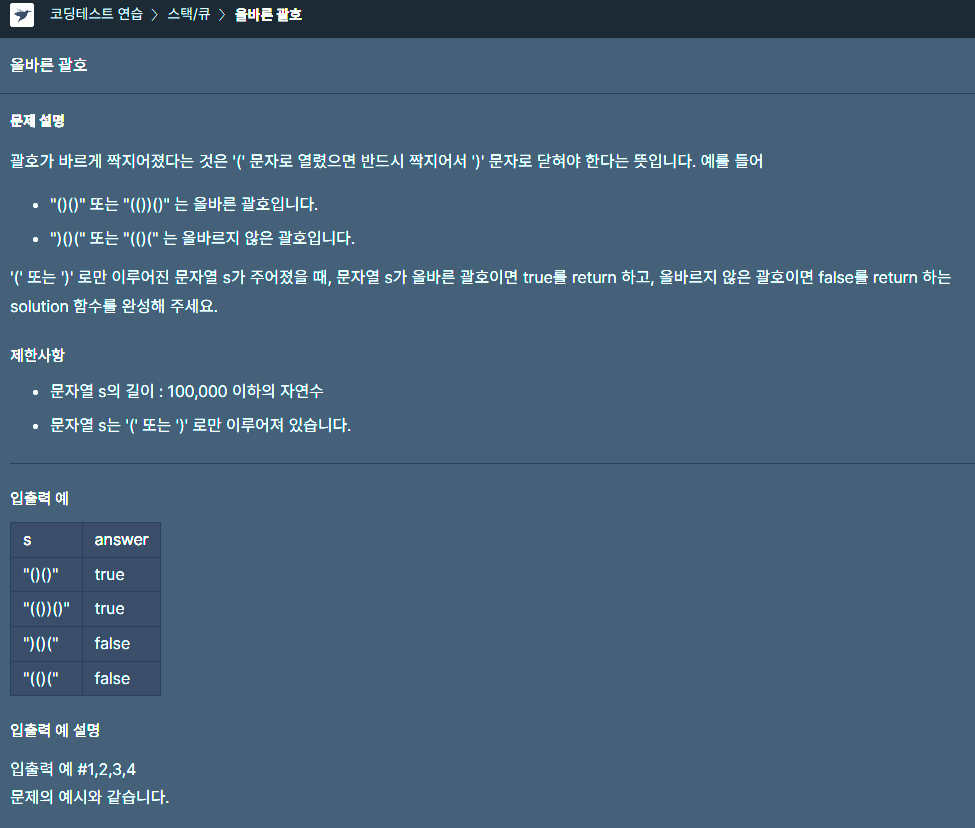 오늘 푼 문제는 프로그래머스 올바른 괄호문제였다. https://school.programmers.co.kr/learn/courses/30/lessons/12909